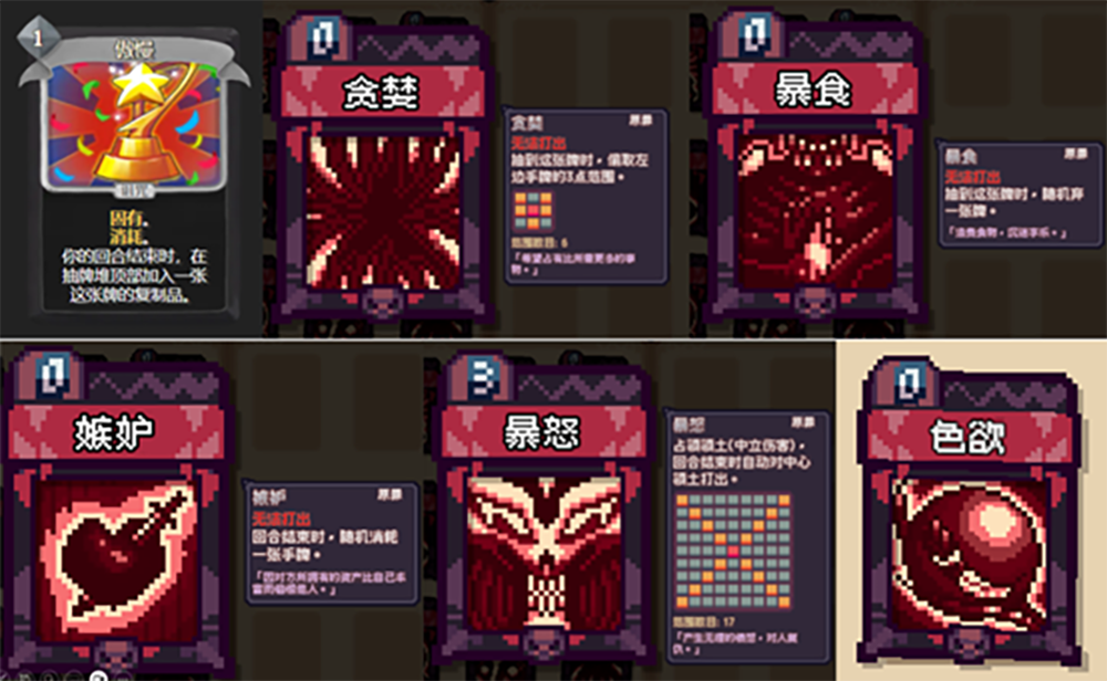 “游·见”是ChinaJoy与Game Connection联合推出的游戏人专访栏目,我们将聚焦在游戏开发者、发行商、游戏产品上,讲述游戏背后的故事,探究每个创意是如何诞生的,分享对行业的见解和观点,发现那些不为人知的精彩瞬间。 当伤害数值被拆解为形状边界、当“暴怒”与“节制”在卡组中缠斗,《像素英雄:色系战纪》试图用一场色彩主导的卡牌战争,重构我们对Roguelike构筑游戏的认知。它将“喷射涂地”式地图机制引入DBG体系,用部署守护、范围运算与图块染色打造战场动态;原罪与美德牌对应人性七宗罪,塔罗机制带来一次性决策权重,再辅以“意图系统”与“精灵法阵”的空间逻辑考验,令卡组构建跳脱出数值框架,回归位置、节奏与图形的三维博弈。来自雾雨游戏工作室的双人团队,在像素棋盘上构建起一套包含领域争夺、叙事演出与挑战进阶的完整闭环,他们以职业技能差分、剧情解锁与核心机制重写,为传统“卡牌爬塔”开辟出一道以形制换感知、以构筑解意图的色彩迷宫。 Q:请简单介绍一下开发团队以及《像素英雄:色系战纪》这款游戏吧! A:大家好,我们是雾雨游戏工作室,团队由程序我和一位美术组成。团队在此之前还做过《像素英雄:领土战争》和《像素英雄:球球王国》两款免费公开的斗蛐蛐游戏作为我们的试水作,在积累一定的经验之后开启了《色系战记》的项目。《色系战记》是一款以类喷射战士的“涂地”玩法为核心构筑的卡牌肉鸽游戏。游戏将传统DBG的伤害数值变成了对应的范围形状,打出手中的卡牌将对手的领地染成你的颜色,并巧妙地运用战术来保护己方部署,击垮对手的核心意图,最终封印吞噬色彩的虚空领主,让彩虹重回大陆。  Q:游戏中原罪卡、美德卡、塔罗牌的设计理念分别是什么?玩家在实战中如何合理运用这些特殊卡牌? A:在我们世界观设定参考的一部动画片《七色战记》中,每个颜色都隐喻着一种原罪,比如红色对应着暴怒,橙色对应着贪婪等等……而刚好,《杀戮尖塔》中有一张诅咒牌就叫“傲慢”——正是七宗罪之一,于是我们便把这类具有负面效果的卡牌按照七宗罪的思路设计:“贪婪”原罪牌会抢夺你左边手牌的范围、“暴食”会随机弃置一张手牌等。当然,如果利用得当,原罪牌也并非全是负面效果,你可以用“嫉妒”消耗不需要的手牌,也可以运用“暴怒”让你的对手吃点苦头。另外,如果敌人合你的胃口,你甚至还可以对他们使用“色欲”……? 在其它DBG中,这些具有负面效果的卡牌大多无法升级。但美德牌,正是对应这些原罪牌的锻造卡牌,在天主教义中,这些美德正是与七宗罪相对立的人类所拥有的7种美好的情感。这也象征着玩家角色克服了这些负面情感,将其变为了更美好的品德。而在效果上,美德牌相当于这些原罪牌的翻版,“贪婪”对应的“慷慨”会给予左边手牌该卡的一半范围、“暴食”对应的“节制”会从弃牌堆中重新获得一张牌。 而塔罗牌的定位类似《欺诈之地》中的销毁牌。它们在打出一次后便会永久移除出你的卡组,是一次性的强力卡牌。和《杀戮尖塔》中的药水不同的是,塔罗牌没有拾取上限,但塔罗牌需要抽上来再使用,也要考虑拿太多塔罗牌可能会阻碍你正常卡组的运作,让你本来能留到BOSS再使用的塔罗牌被迫交到一般的小怪上;但好处是其可以和你的手牌配合,比如多复制一张塔罗牌,锻造升级这些塔罗牌等。 Q:在设计部署卡牌时,你们如何确保它们既有独特作用,又能保持强度平衡?同时,如何兼顾它们与其他卡牌的协同效果,支持玩家构建多样化的卡组策略? A:其实部署牌就是《杀戮尖塔》中的能力牌,只不过这种能力buff是可以被敌人摧毁的。比如“回收中心”这张牌其实就是战士鸽“黑暗之拥”卡牌的部署版,但你打出去之后不是万事大吉的,敌人有可能会攻击你这个部署,于是玩家多了一个保护这项能力的过程。所以在平衡上我们并不需要花太多的精力,如果这个部署十分强力,我们可以调整它的稀有度,也可以增加敌人对这个部署的攻击欲望。因此我们的重心会更放在怎么让这个部署变得好玩和具有游戏特色,设计部署时,我们会尽可能让这个效果能被大部分卡牌触发,比如这张“星相法阵”只需要卡牌有指定目标的能力即可触发、而这张“狂潮图腾”无论敌我的攻击都可以触发其抽牌的效果,使得玩家的进攻端和防御端卡牌都可以参与这个部署的互动,且同时它们也紧紧围绕着游戏的领土地块机制。 Q:游戏加入了丰富的抽卡、回血、增加攻击范围等多功能卡牌,你们在设计新卡牌效果时的思考流程通常是怎样的? A:我们设计核心其实最重要的就是好玩,其它理论方面的知识都是辅助效果。但我们也会从以下几个方面入手,我们会把卡牌分为四大类:攻击端,防御端,能量端和过牌端,以攻击端为例,我们会先想怎么把这张牌的攻击效果做得有趣,像“超对称性”,就是一张结合了游戏特色的多段伤害牌;或者我们会给卡牌加一些需要特定条件触发的额外效果,比如枪手Orange的精准词条;再或者我们会做一些端口转化的卡牌,比如从能量端转化为攻击端的“霜寂”。 Q:敌方的“意图”系统是如何设计的?在实际游玩中,玩家要如何有效解读并提前规划自己的战术? A:“意图”最基本的目标就是考虑玩家四个端口的维度,玩家卡组强度达到一定程度后才能满足“意图”最基本的数值
