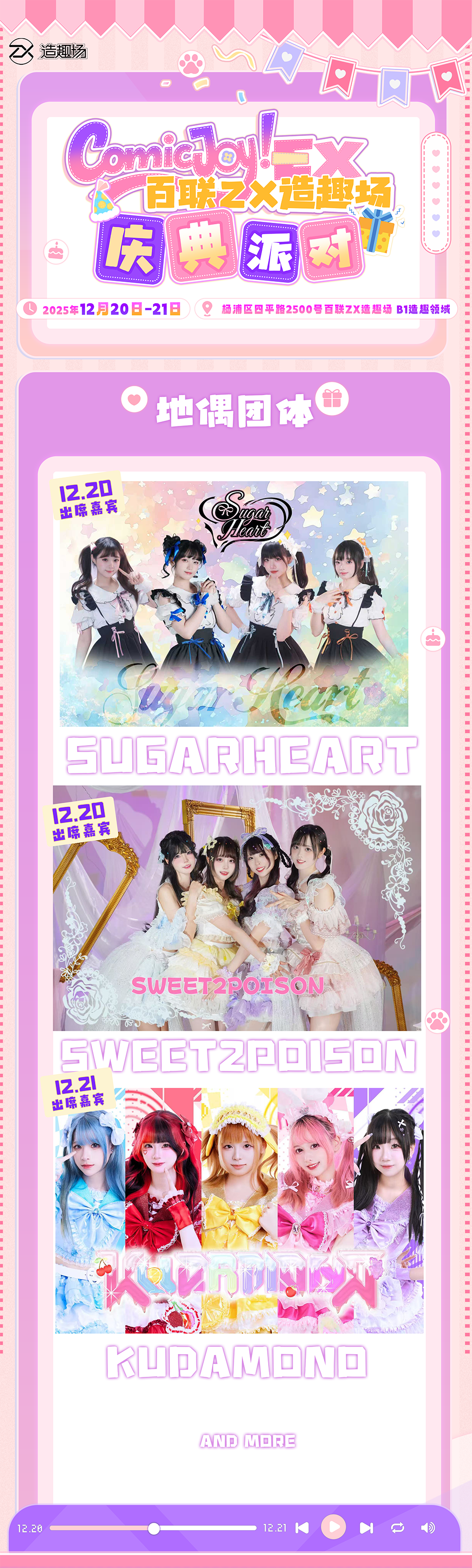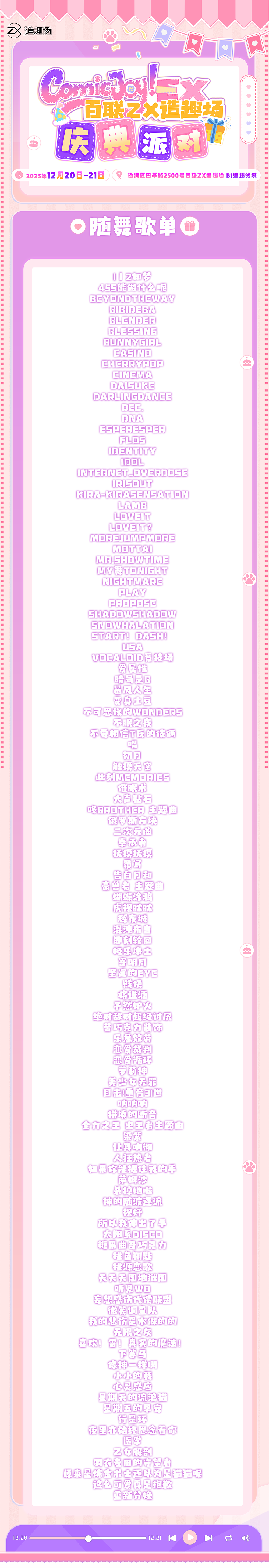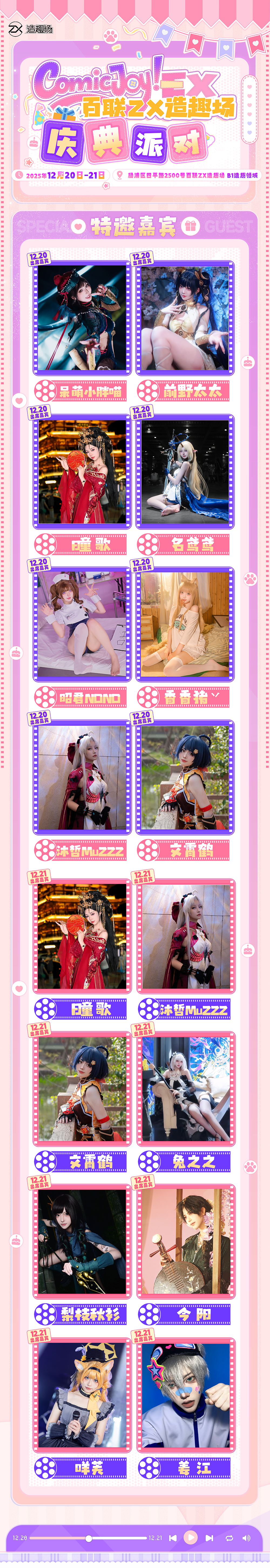 本次活动通过多元内容设计,为二次元文化爱好者打造沉浸式交流场景,助力爱好者找到同好共鸣,留存美好体验。2025年12月20日至21日,百联ZX造趣场期待与广大二次元文化爱好者相遇,共赴一场兼具交流价值与体验感的文化聚会。